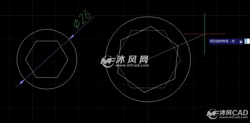 第1步:画直径26然圆,然后再用圆指令,经过追寻功用向右追寻(发动圆,然后靠一下圆心不要点击,然后向右滑动即可)