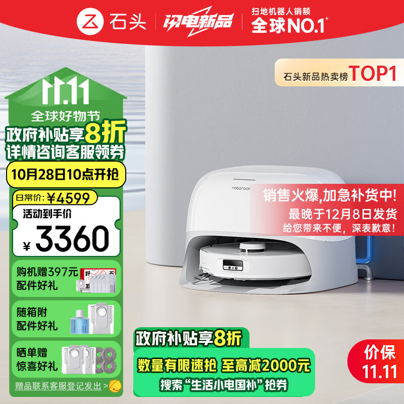 石头(roborock)扫地机器人扫拖一体 P20 Pro 主动上下水版 主动集尘热水洗拖布烘干补水擦地拖地 A1340RR