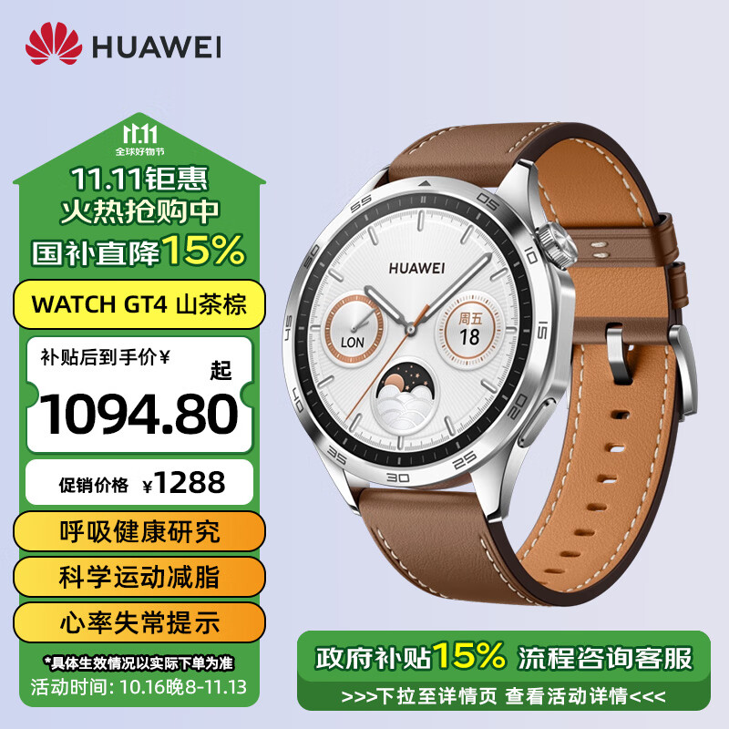 华为WATCH GT4华为手表智能手表呼吸健康研讨心律失常提示华为gt4手表山茶棕 送男友46mm